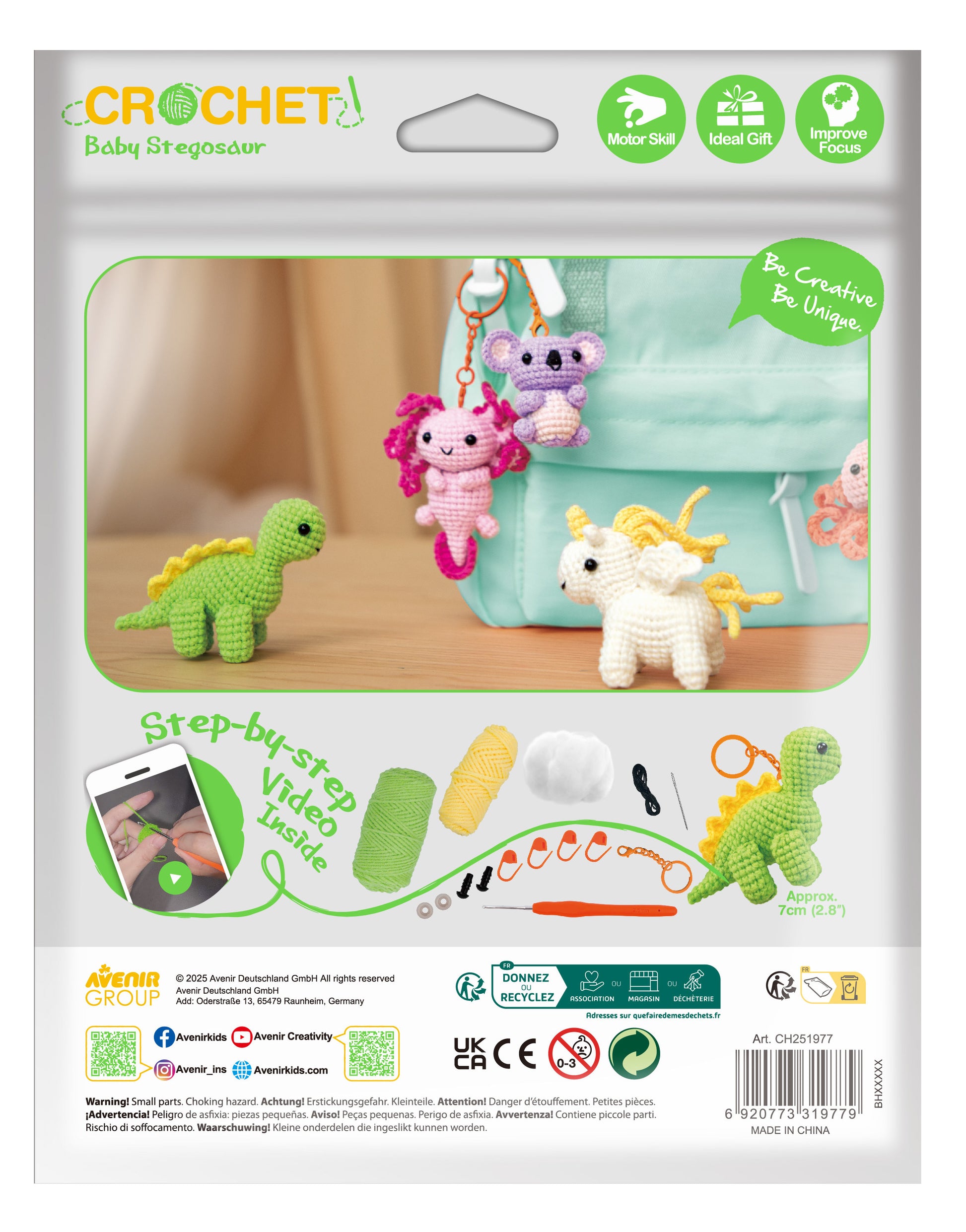 This kit provides yarns, accessories, and instructions to create a cute baby stegosaurus plush. Beginner-friendly with video guidance, it’s perfect for little dinosaur fans.