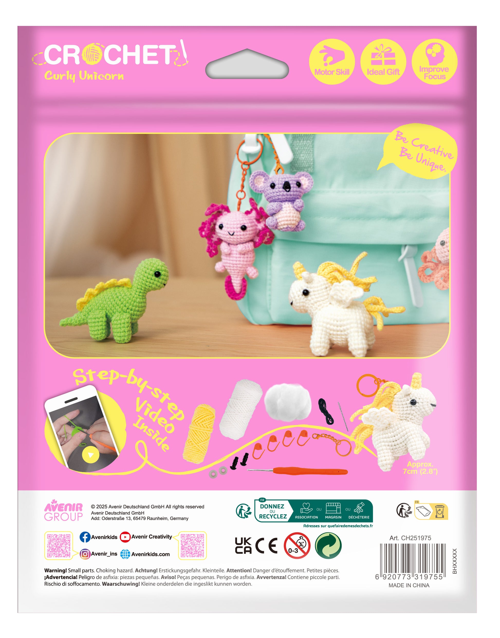 Crochet your own curly-maned unicorn with this complete beginner-friendly kit. Packed with yarn, tools, and accessories, plus easy-to-follow video guides. A magical craft project for kids and unicorn lovers!