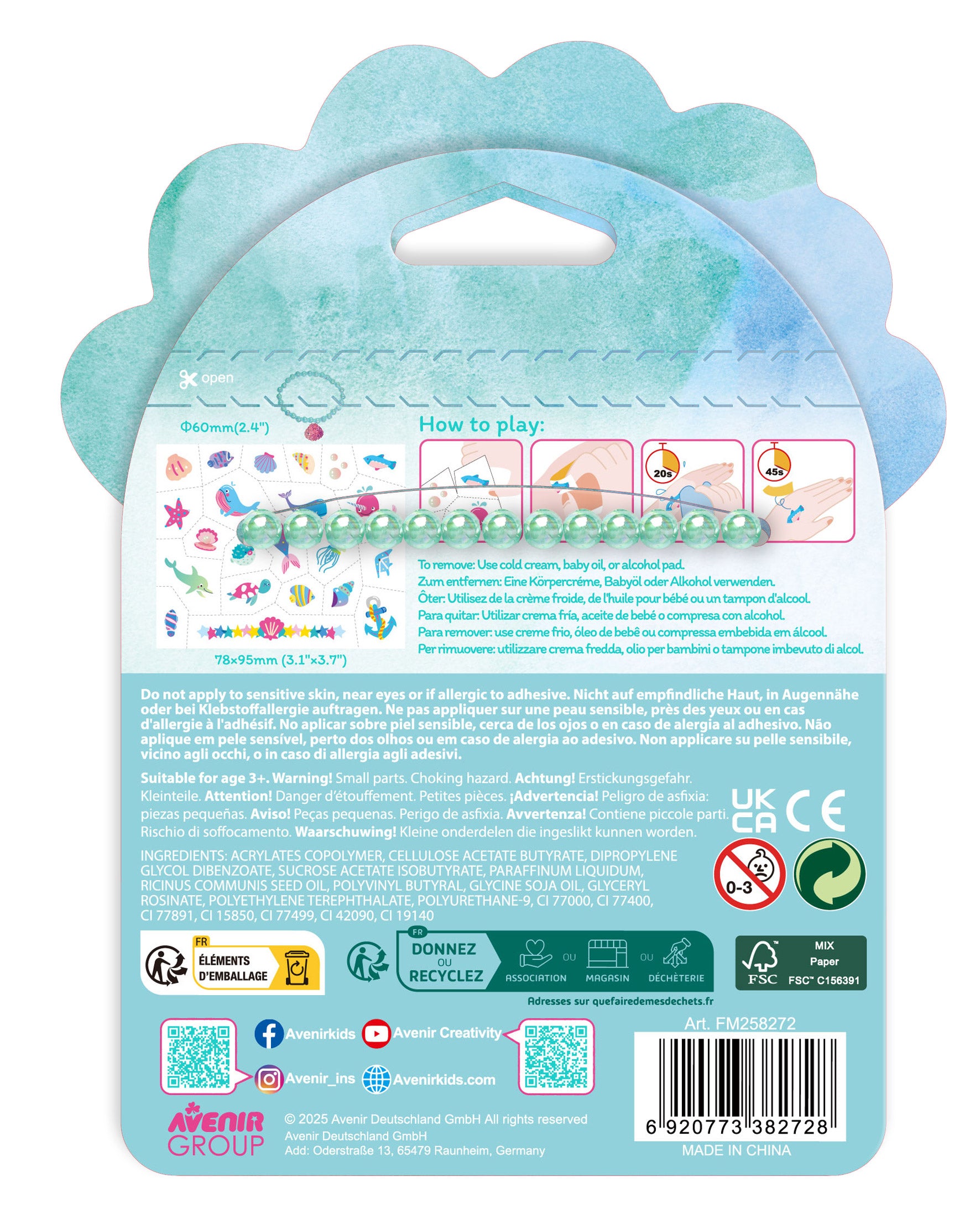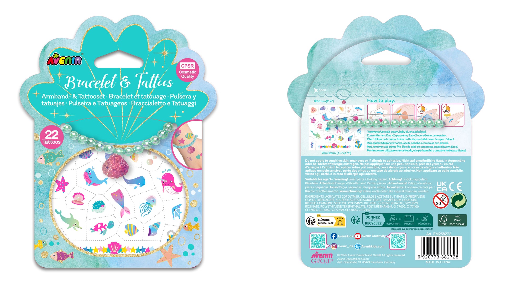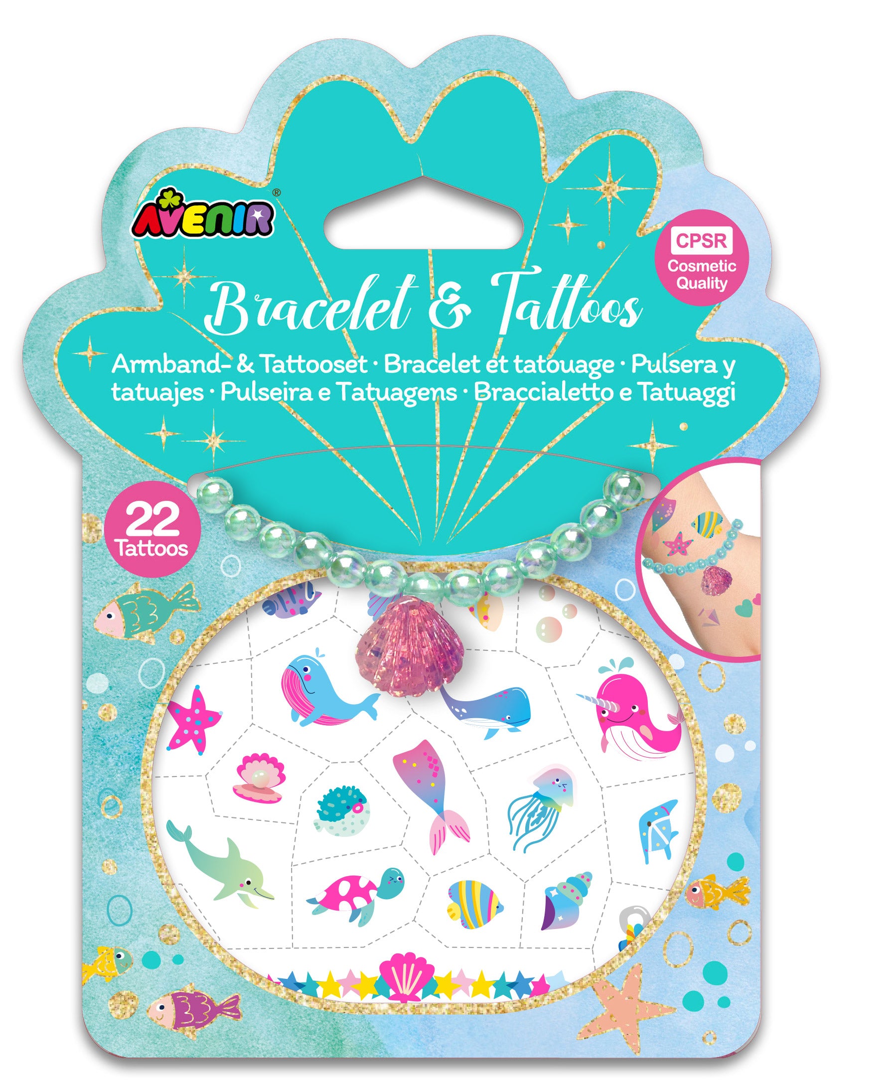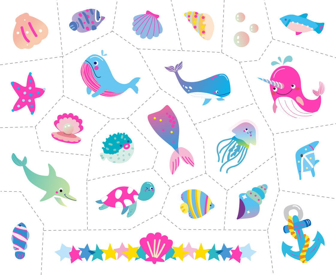 The set includes 222 safe tattoo stickers and a colourful bracelet. Kids can mix and match designs for endless fashion play.