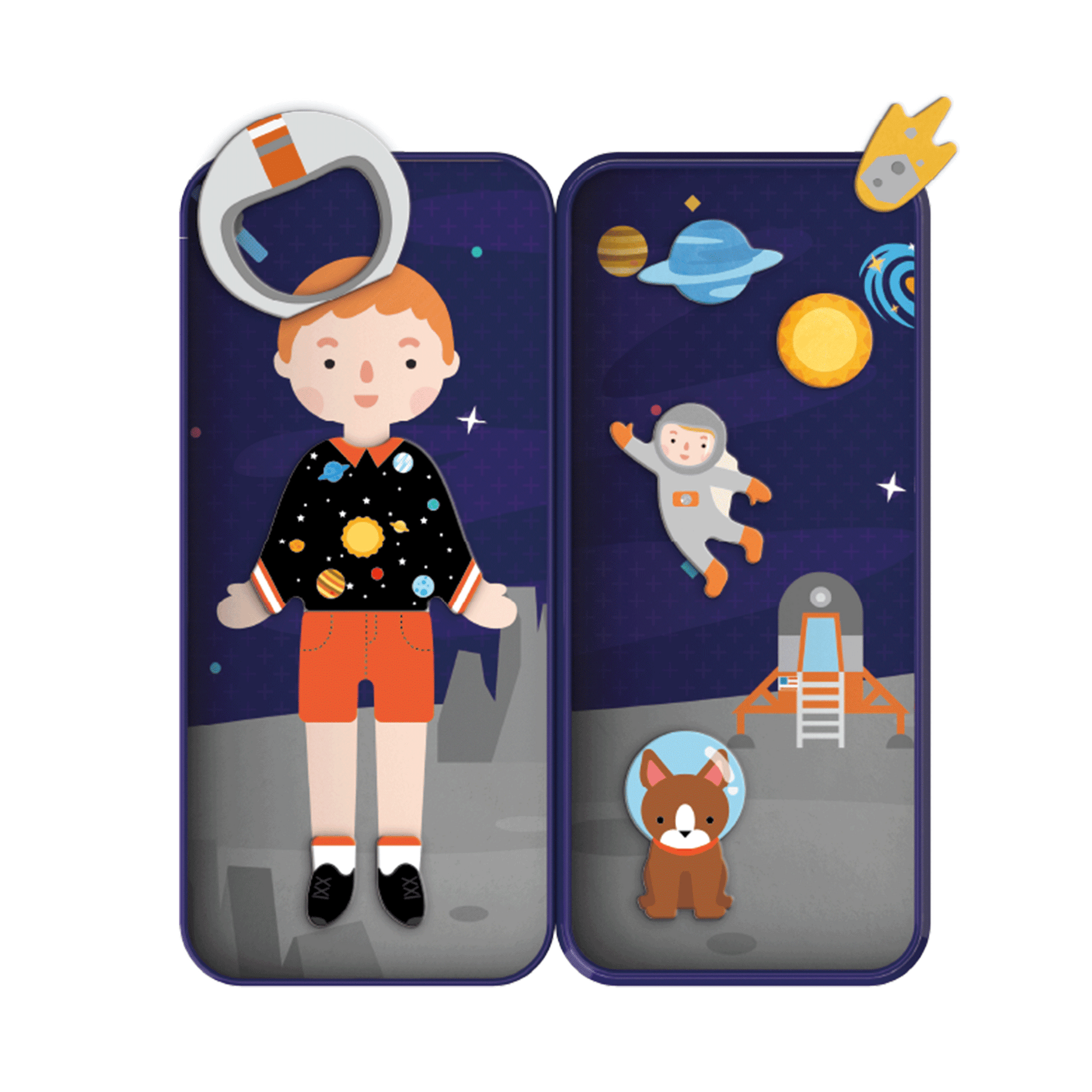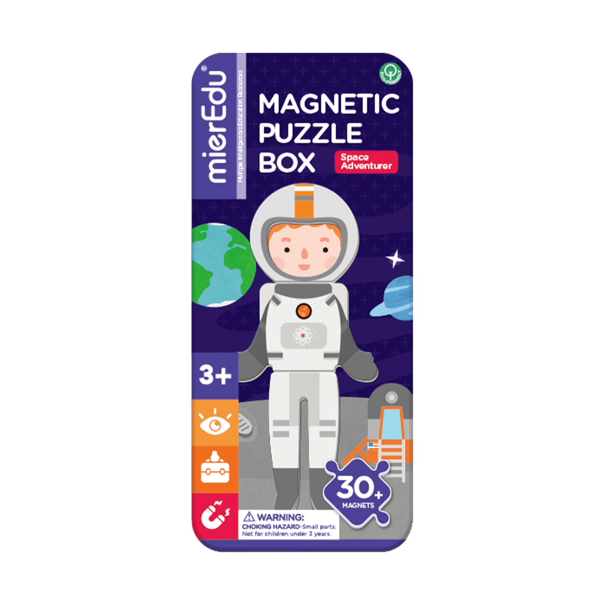 Blast off into learning with the Space Adventures Magnetic Puzzle Tin! Children aged 3+ can create and recreate their own intergalactic scenes using colorful, durable magnets. As they arrange astronauts, rockets, and planets, kids practice fine motor skills, problem-solving, and imaginative storytelling. The compact tin makes this set perfect for travel, quiet play, or screen-free fun anywhere.