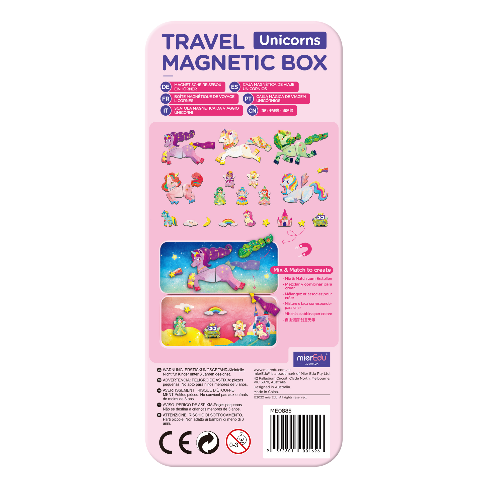 Step into a magical world with the Unicorns Magnetic Puzzle Tin! Kids aged 3+ can design enchanting fantasy scenes filled with unicorns, castles, and rainbows. The magnetic pieces inspire creativity and storytelling while building fine motor skills. With its compact tin, this set is perfect for travel or quiet play at home.