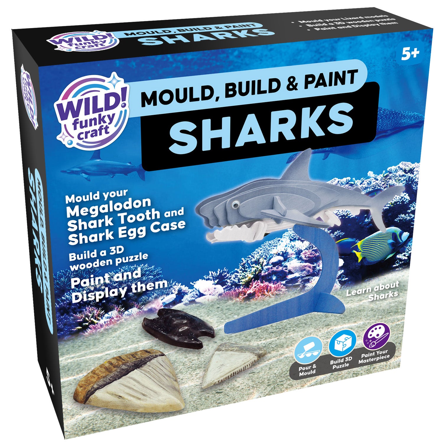 This kit is one of a series of collectable Animal Craft kits for creative young hands and minds. Make and custom paint and varnish your own HUGE Megalodon Tooth, life size Great White Shark Tooth and life-size Shark Egg Case. Assemble a detailed timber model of a Great White Shark.